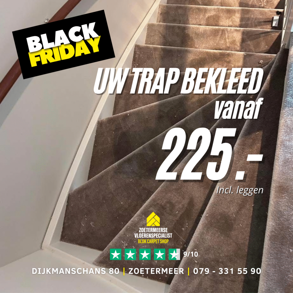 Geef je trap een warme, stijlvolle uitstraling met onze trapstoffering tapijt. Verkrijgbaar in diverse structuren en kleuren, past perfect bij elke interieurstijl en geeft een veilig, comfortabel gevoel.